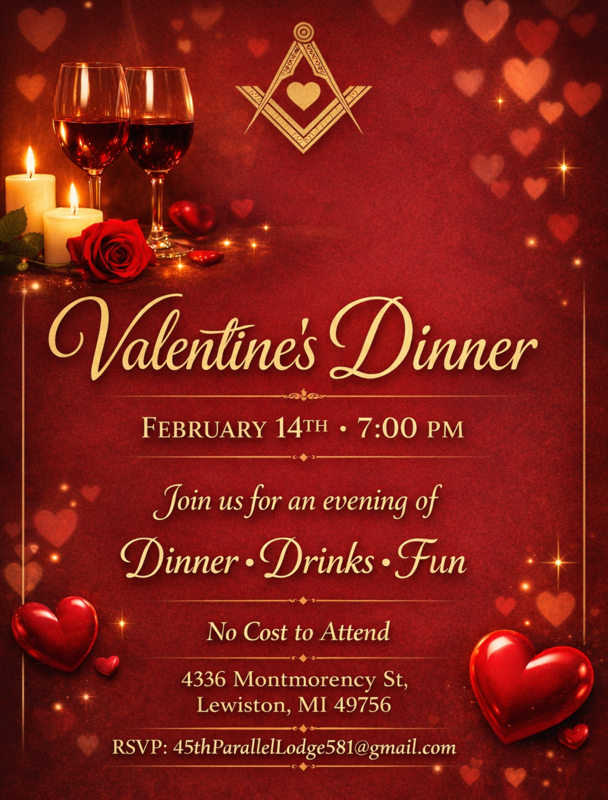 Dinner begins at 6:00 PM, and all family and friends are warmly invited to join us for an evening of good food and fellowship. Dinner is also open to anyone interested in learning more about Freemasonry, so please feel free to invite guests who may be curious or considering joining. It’s a relaxed, informal opportunity to ask questions and get to know the members.